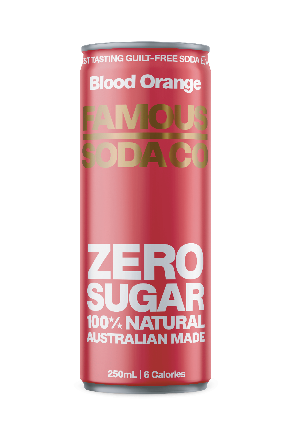 What sets our Blood Orange apart in the world of no sugar drinks is its ability to deliver a full-bodied taste experience without relying on added sugars. Packaged in a convenient 24-pack of 250ml cans, Famous Soda Blood Orange is always ready to add a pop of colour and flavour to your day. Whether you're seeking a refreshing post-workout drink, a unique mixer for cocktails, or simply craving the best orange soda experience, our Blood Orange rises to every occasion.